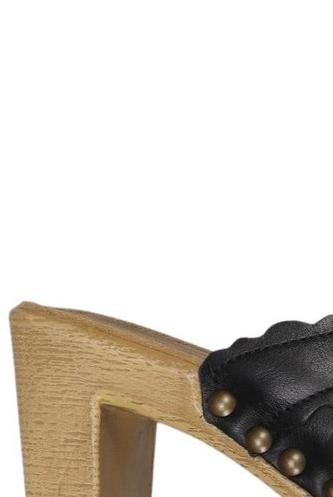 | Details | Wildlederoptik, Metall, Holz, Stollen |