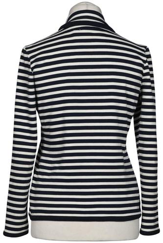 | Details | Jersey, Langarm, V-Ausschnitt, Front Knopfleiste, Streifen |