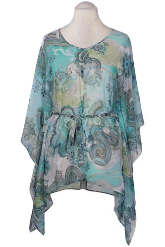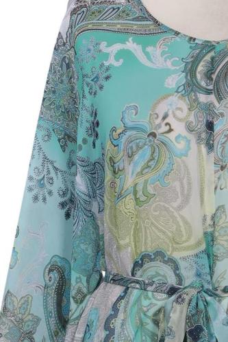 | Details | Chiffon, Dreiviertelarm, Bindegürtel, V-Ausschnitt, verschlusslos, Paisley |