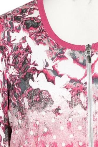| Details | Langarm, Rundhals, Front Reißverschluss, Floral, Punkte |