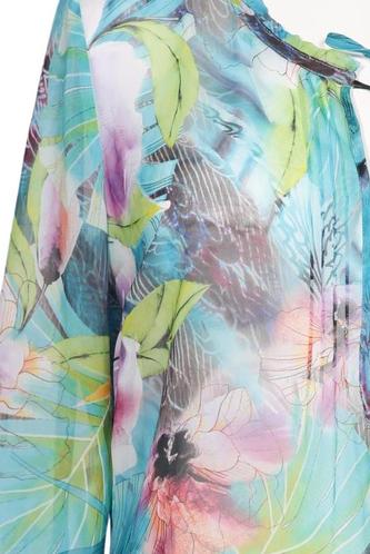 | Details | Chiffon, Dreiviertelarm, V-Ausschnitt, verschlusslos, Floral |