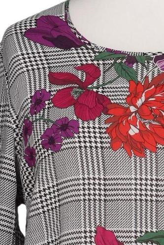 | Details | Chiffon, Langarm, Rundhals, verschlusslos, Floral, Kariert |