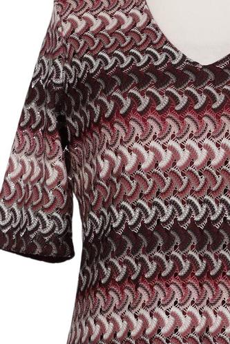 | Details | Grobstrick, Kurzarm, V-Ausschnitt, Motivprint |