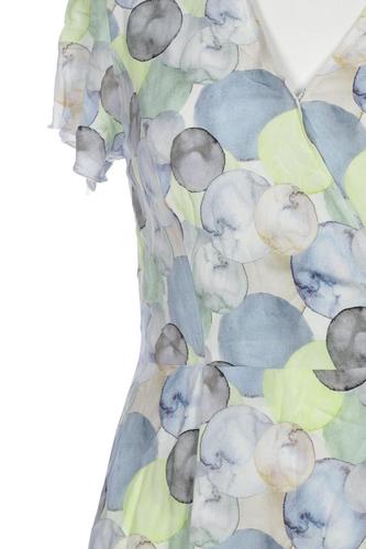 | Details | Kurzarm, Bindegürtel, Wickeloptik, V-Ausschnitt, Floral |