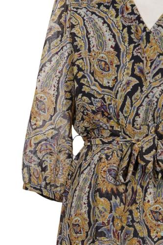 | Details | Chiffon, Kurzarm, Bindegürtel, V-Ausschnitt, Paisley |