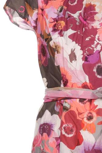 | Details | Kurzarm, Bindegürtel, Rundhals, Reißverschluss/Knöpfe hinten, Floral |