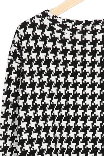 | Details | Grobstrick, Langarm, Rundhals, Hahnentritt |
