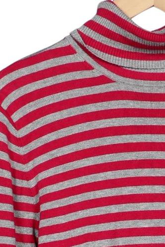 | Details | Grobstrick, Langarm, Rollkragen, Streifen |