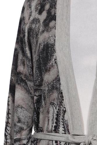 | Details | Grobstrick, Langarm, Bindegürtel, verschlusslos, Paisley |