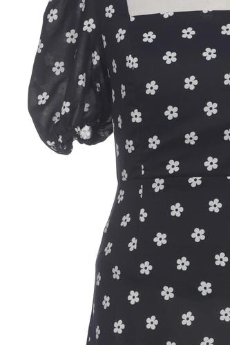 | Details | Kurzarm, V-Ausschnitt, Reißverschluss/Knöpfe hinten, Floral |