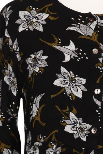 | Details | Langarm, Rundhals, verschlusslos, Floral |