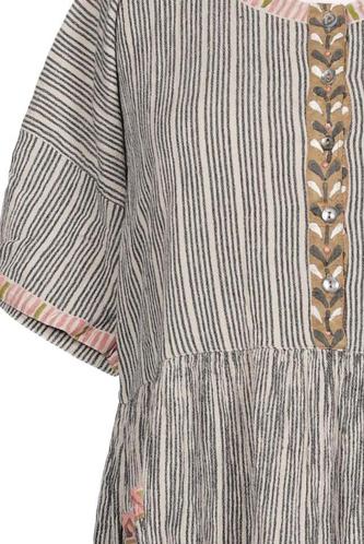 | Details | Stickerei, Kurzarm, Rundhals, Front Knopfleiste, Streifen |