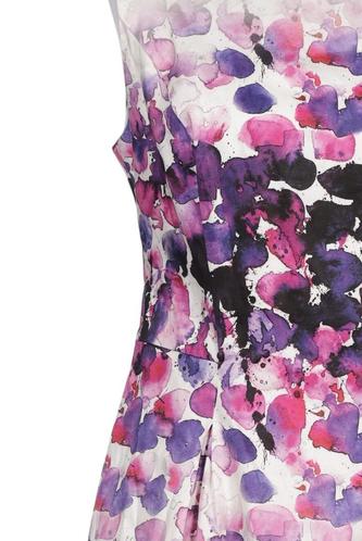 | Details | Plissee, ärmellos, Rundhals, Reißverschluss/Knöpfe hinten, Floral |