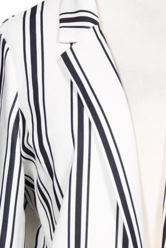 | Details | Langarm, V-Ausschnitt, Front Knopfleiste, Streifen |