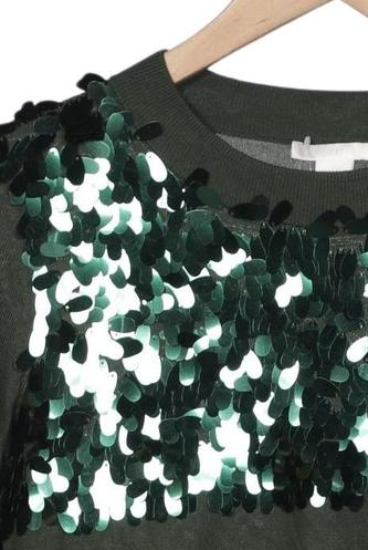 | Details | Pailletten, Grobstrick, Langarm, Rundhals |