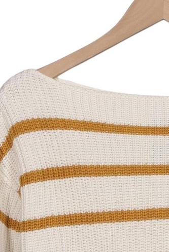 | Details | Grobstrick, Langarm, V-Ausschnitt, Streifen |