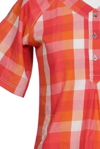| Details | Kurzarm, V-Ausschnitt, verschlusslos, Kariert |