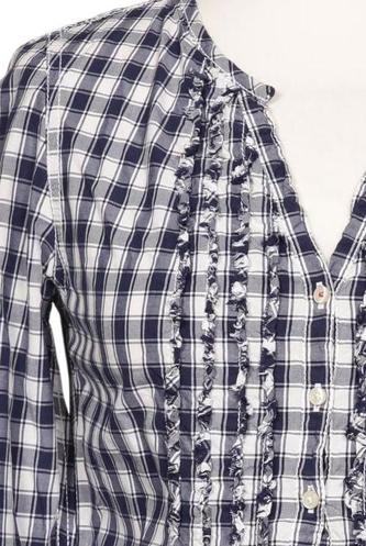 | Details | Rüschen, Langarm, V-Ausschnitt, verschlusslos, Kariert |