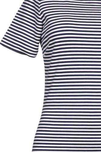 | Details | Jersey, Kurzarm, Rundhals, Reißverschluss/Knöpfe hinten, Streifen |