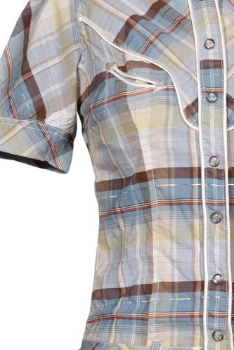 | Details | Kurzarm, Bindegürtel, Rundhals, Front Knopfleiste, Kariert |