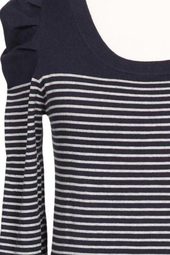 | Details | Grobstrick, Langarm, Rundhals, Reißverschluss/Knöpfe hinten, Streifen |