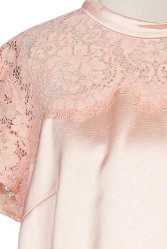 | Details | Satin, Spitze, Kurzarm, Rundhals, verschlusslos |