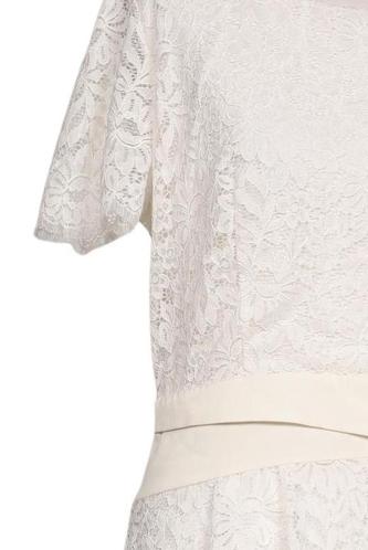 | Details | Spitze, Kurzarm, Bindegürtel, Rundhals, Reißverschluss/Knöpfe hinten, Floral |