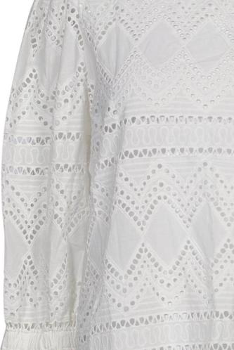 | Details | Spitze, Rüschen, Lochstickerei, Dreiviertelarm, Rundhals, Rauten |
