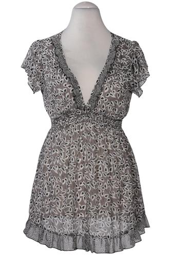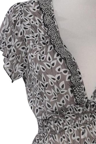 | Details | Rüschen, Chiffon, Kurzarm, V-Ausschnitt, verschlusslos, Gummizug/Tunnelzug, Floral |