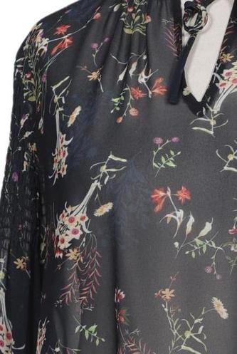 | Details | Rüschen, Chiffon, Langarm, V-Ausschnitt, verschlusslos, Floral |
