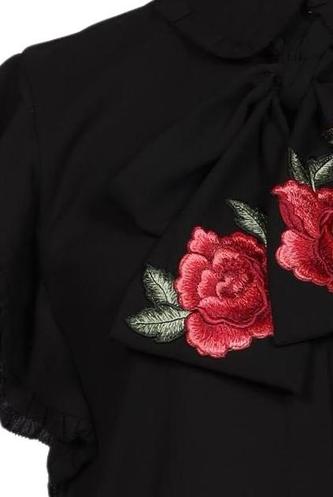 | Details | Stickerei, Rüschen, Kurzarm, Front Knopfleiste, Floral |