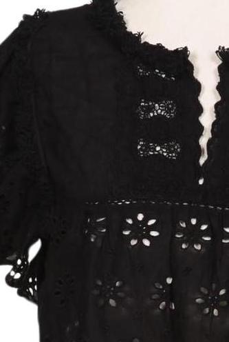 | Details | Cutouts, Spitze, Lochstickerei, Kurzarm, Rundhals, verschlusslos |