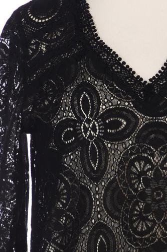 | Details | Spitze, Lochstickerei, Dreiviertelarm, V-Ausschnitt |