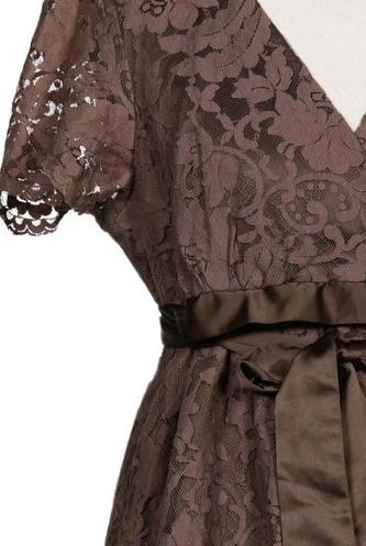 | Details | Spitze, Kurzarm, Bindegürtel, V-Ausschnitt, Reißverschluss/Knöpfe hinten, Floral |