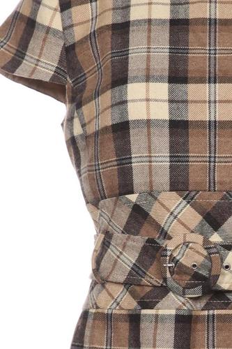 | Details | Kurzarm, Bindegürtel, Rundhals, Reißverschluss/Knöpfe hinten, Kariert |