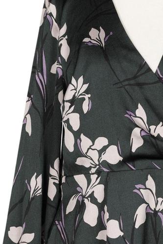 | Details | Satin, Langarm, V-Ausschnitt, Floral |