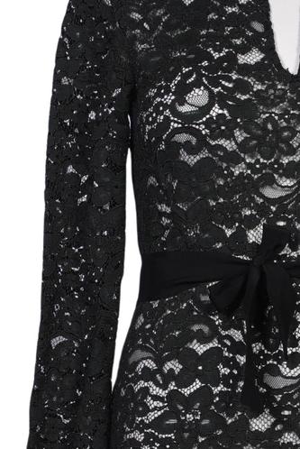 | Details | Spitze, Langarm, Bindegürtel, V-Ausschnitt, Reißverschluss/Knöpfe hinten, Floral |