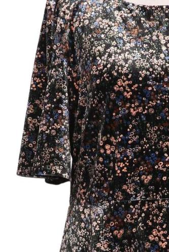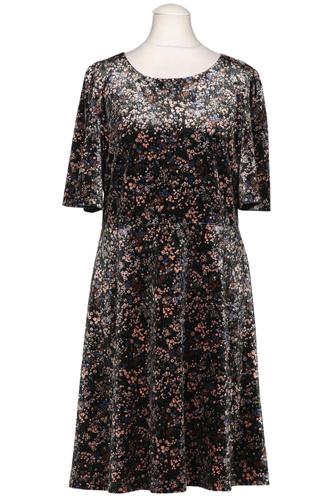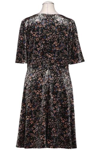 | Details | Samt, Kurzarm, Rundhals, Reißverschluss/Knöpfe hinten, Floral |