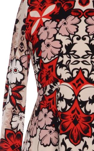 | Details | Langarm, Rundhals, Reißverschluss/Knöpfe hinten, Floral |