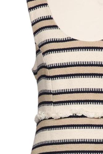 | Details | Grobstrick, ärmellos, V-Ausschnitt, Streifen |
