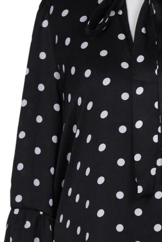 | Details | Satin, Langarm, V-Ausschnitt, Punkte |