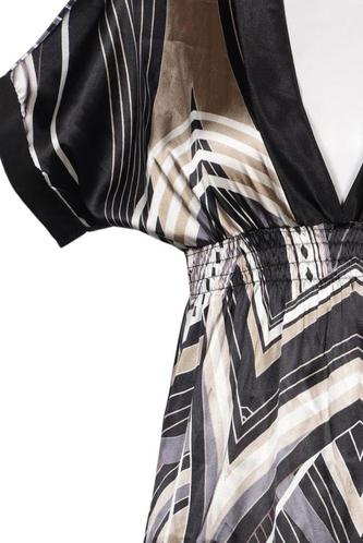 | Details | Satin, Kurzarm, V-Ausschnitt, Motivprint |