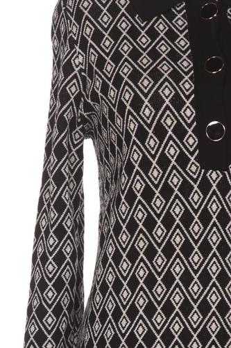| Details | Grobstrick, Langarm, Rundhals, Front Knopfleiste, Rauten |