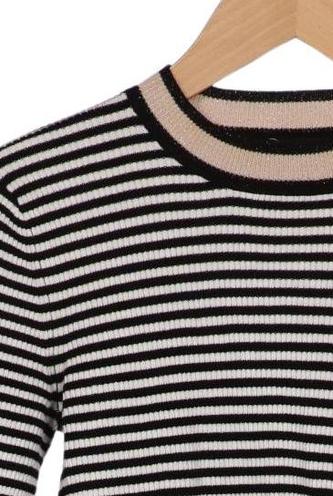 | Details | Grobstrick, Dreiviertelarm, Rundhals, Streifen |