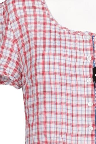 | Details | Plissee, Kurzarm, Front Knopfleiste, Kariert |