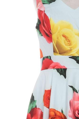 | Details | ärmellos, V-Ausschnitt, Reißverschluss/Knöpfe hinten, Floral |