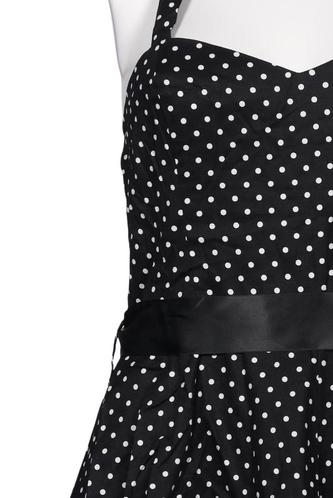 | Details | ärmellos, Bindegürtel, V-Ausschnitt, Reißverschluss/Knöpfe hinten, Punkte |