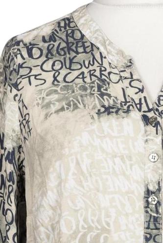 | Details | Langarm, V-Ausschnitt, verschlusslos, Motivprint |