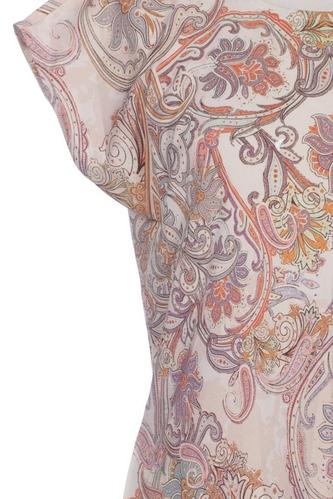 | Details | Kurzarm, Rundhals, Reißverschluss/Knöpfe hinten, Paisley |