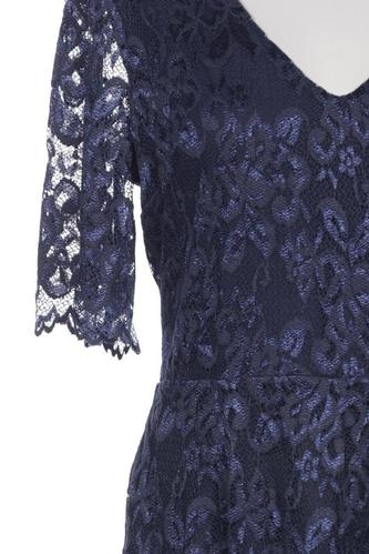 | Details | Spitze, Kurzarm, V-Ausschnitt, Reißverschluss/Knöpfe hinten, Floral |